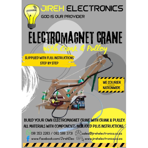 Build your own Electromagnet Crane with Crank & Pulley with LED LIGHT with this Kit.